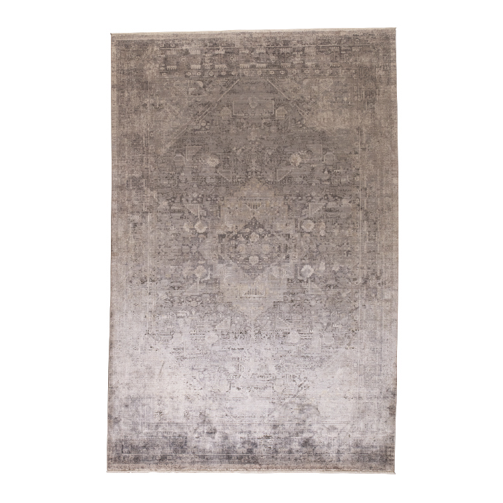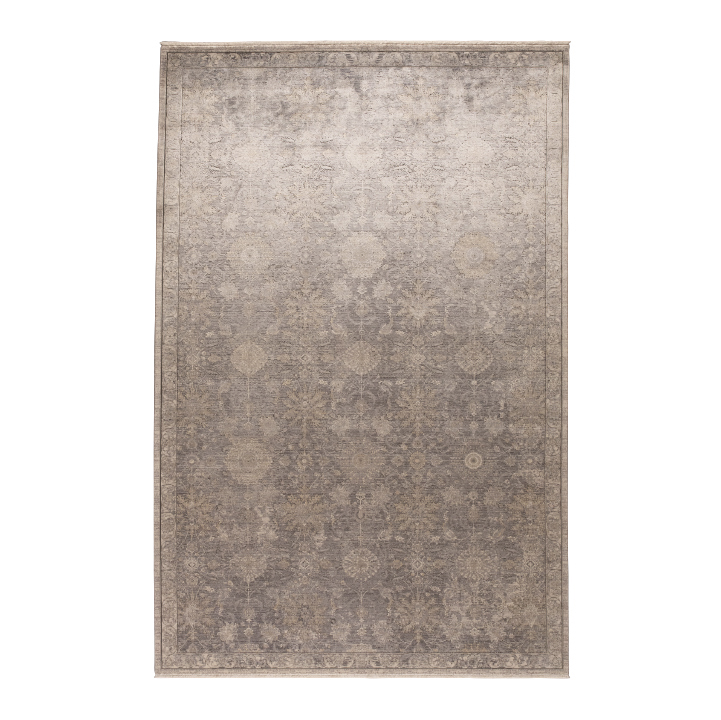Alfombra oriental moderna de acrílico, algodón, poliéster, viscosa, rectangular, turca de color(es) gris y marfil.