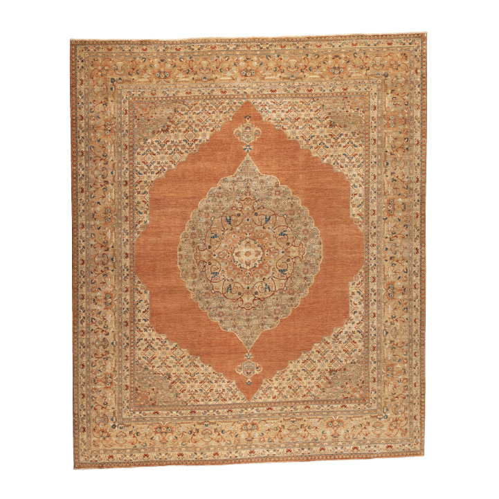 Alfombra clásica, acompañado de sutiles flecos, hecha a mano.