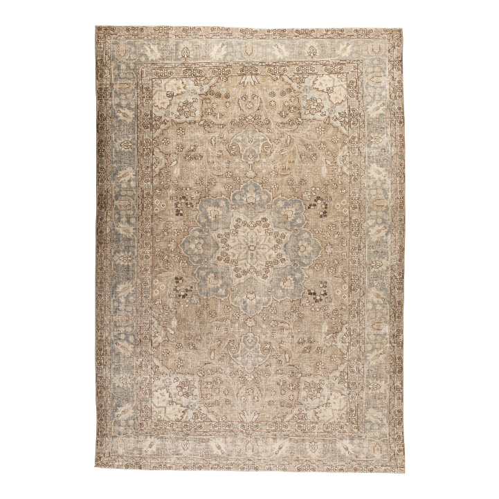 Alfombra oriental sobreteñida estilo vintage de lana, rectangular, turca de color(es) beige.
