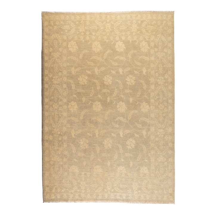 Alfombra clásica, con diseño contemporáneo, hecha a mano.